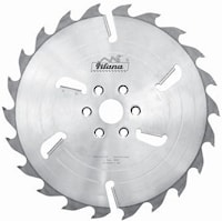 94.1 WZ Угловые пильные диски предназначены для распиловки древесины различной породы и твердости на углопильных дисковых станках. Пильные диски имеют дополнительные крепежные отверстия, количество и размеры которых отличаются в зависимости от модели углопильного станка. Форма зуба FZ – прямой зуб. Подчищающие ножи расположены точно по отношению к фланцу в зависимости от типа станка, полотно пильного диска имеет термическую обработку. Пильные диски обеспечивают высокое качество пропила в условиях горизонтальной распиловки.